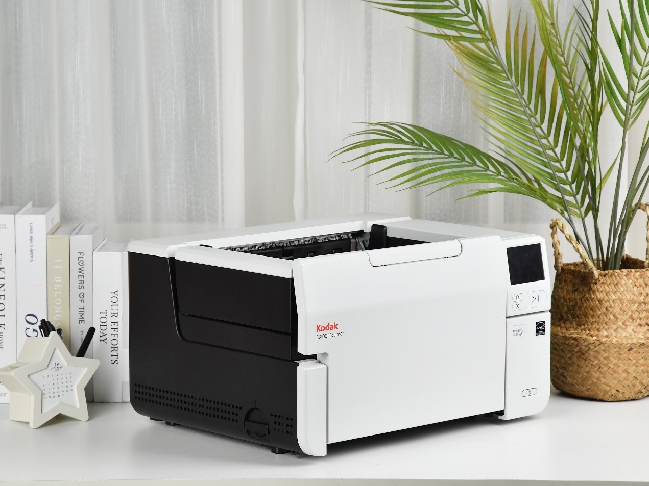 如果单纯的看外观和体积,对于不懂行的人来说,应该很容易的把柯达S3100f认作一台多功能一体机:顶部有平板扫描装置,底部则是“打印”相关的组件,机身还带一个不小的液晶屏。但事实上,这是一台不折不扣的扫描仪。