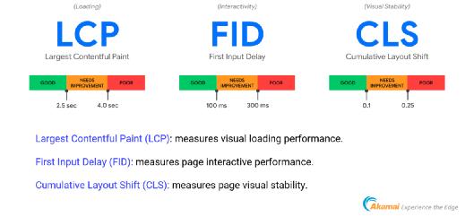 那么跨境电商平台该如何优化以达到谷歌推荐的Core Web Vitals良好数值,最终在搜索引擎排名上名列前茅?Akamai有很多针对性的方案和优化建议,帮助用户将这三个指标提升至谷歌推荐的良好值。