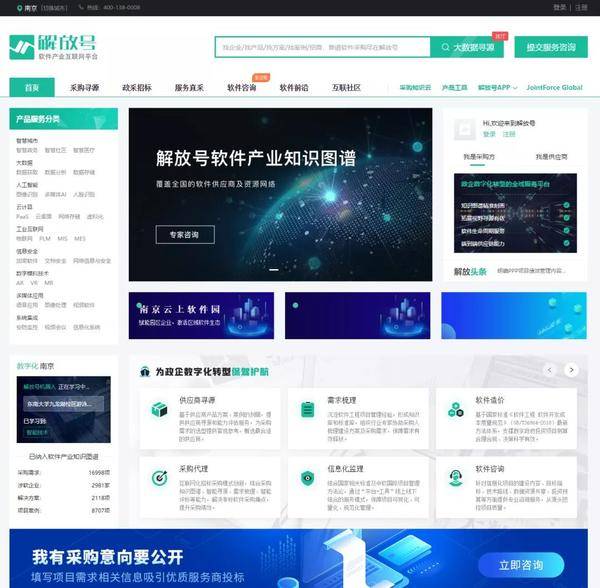 实现精准寻源,仅仅只是解放号伴行政企数字化转型的第一步,解放号(数智版)以知识图谱、产业大数据为底座,上线“供应商寻源”“需求梳理”“软件造价”“采购代理”“信息化监理”五大核心服务,串连咨询、架构设计、采购、监理、数据运营等关键环节,通过精细化运营,和1V1全过程软件咨询服务,伴行政企数字化转型全流程。