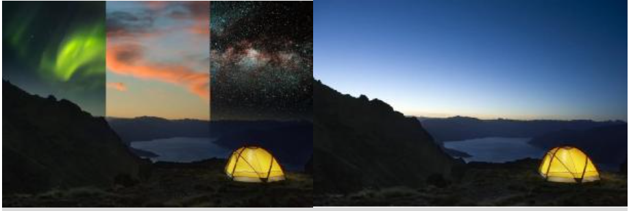 天空替换功能现已增添许多壮丽的天空图像,可供设计师选择并丰富其创意作品,还可以一次导入5,000多张天空图像。