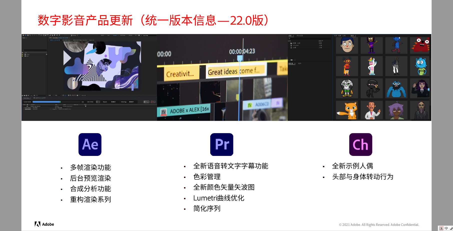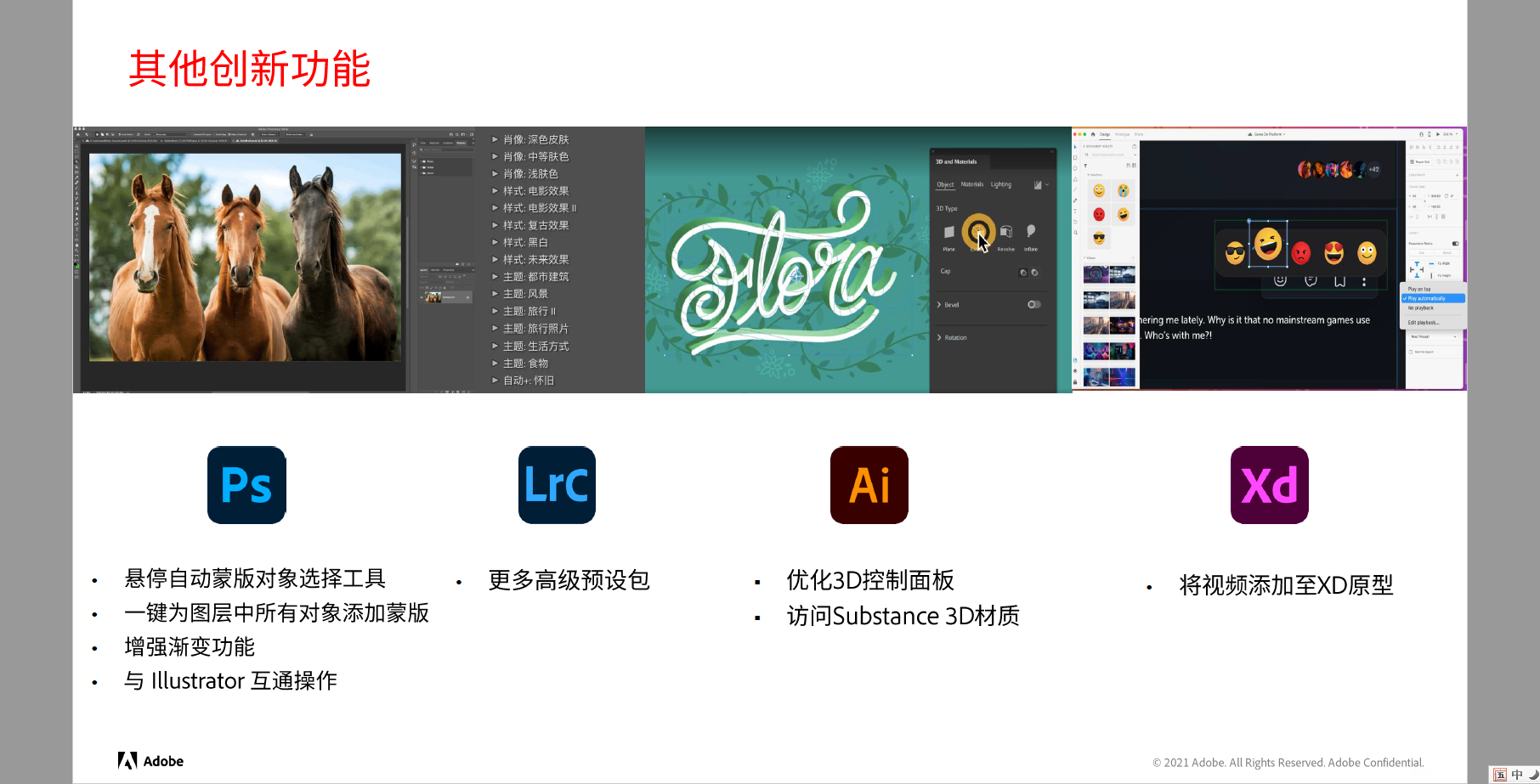 Adobe在MAX 2021中国创新私享会上发布了包括Photoshop、Lightroom Classic、Premiere Pro、After Effects等全家桶软件的重大更新内容。其主旨在于将设计人员从大量重复性工作中解放出来,将更多的注意力专注于设计本身,而非像抠图这样的重复性劳动,真正激发设计人员的灵感。