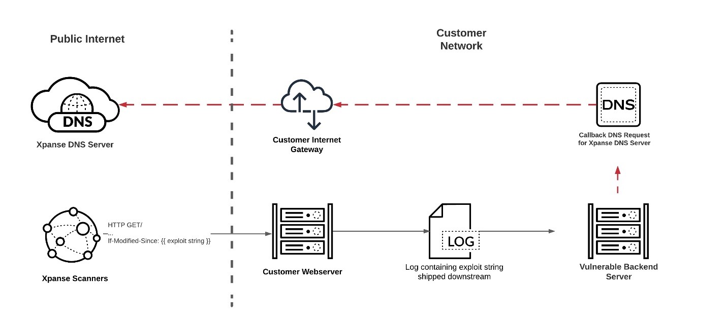 如果我们成功利用该漏洞,我们将对Cortex Xpanse拥有的DNS服务器进行DNS调用。我们跟踪对DNS服务器的所有调用,并向客户提供易受攻击系统的详细信息。