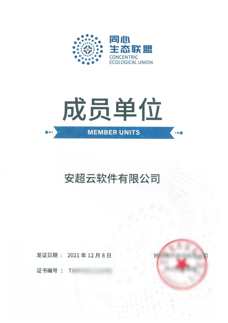 喜讯!安超云正式成为“同心生态联盟”会员单