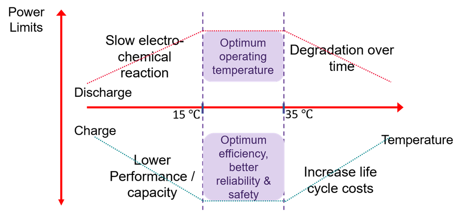 当今的大多数充电电池都属于锂电池,它们的工作温度范围为 15 °C 到 35 °C,在这个温度范围内性能最高,容量最大。