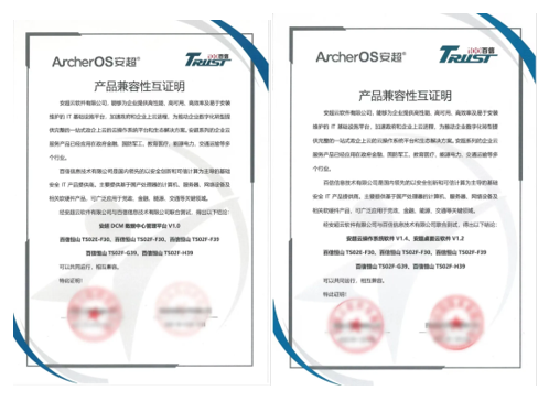 近日,安超云软件有限公司(以下简称:安超云)与百信信息技术有限公司(以下简称:百信)完成产品兼容性互认证。测试结果表明,安超云操作系统软件V1.4、安超桌面云软件V1.2及安超DCM数据中心管理平台与百信恒山TS02E-F30、TS02F-F30、TS02F-F39、TS02F-G39、TS02F-H39系列服务器兼容性良好,性能表现优异,稳定运行,可顺利部署并对外提供服务。