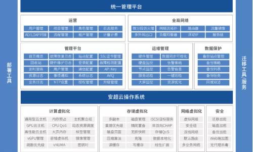 安超云操作系统是一套国内首款基于服务器架构的通用型云操作系统,具有软硬件解耦、应用优化、支持混合业务负载等特点。为企业提供高性能、高可用、高效率及易于安装维护的IT基础设施平台,加速政府和企业上云进程,为推动企业数字化转型提供完整的一站式企业上云的云操作系统平台和生态解决方案。该产品于2021年底正式发布1.5版本,本次升级发布,安超云操作系统展现出了“好用易用”的产品优势,其独特的业务优化技术、数据安全技术、运维管理技术的大幅提升,为广大用户进一步实现贴近用户业务、简化用户运维、保障数据安全的目标。
