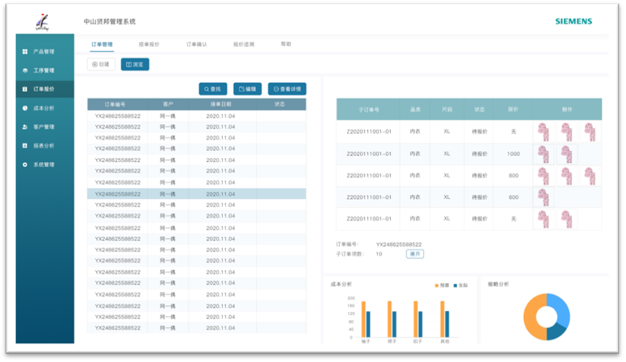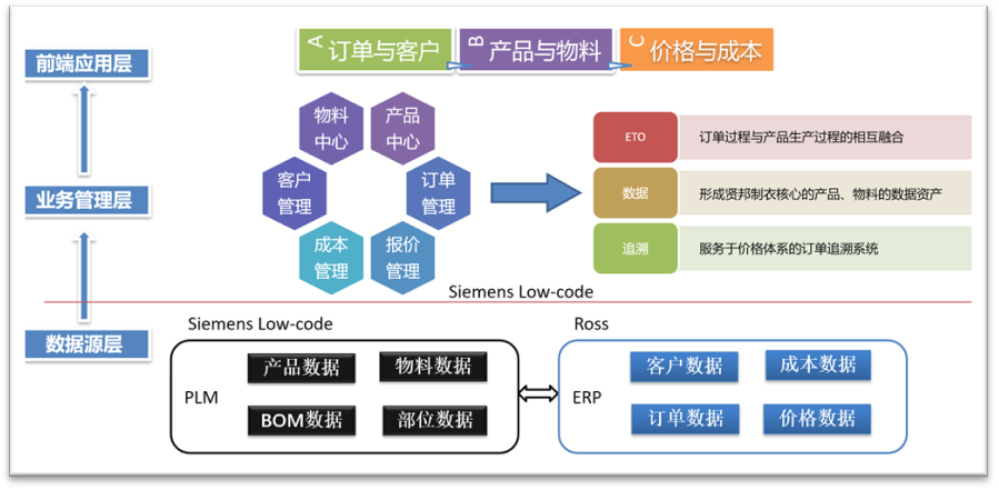 西门子低代码联合合作伙伴能科科技股份有限公司,一起帮助中山贤邦开发了产品生命周期管理(PLM)系统,这是一个完全使用西门子低代码平台开发的针对服装和快消等行业的轻PLM系统,实现了第一阶段的数字化转型: