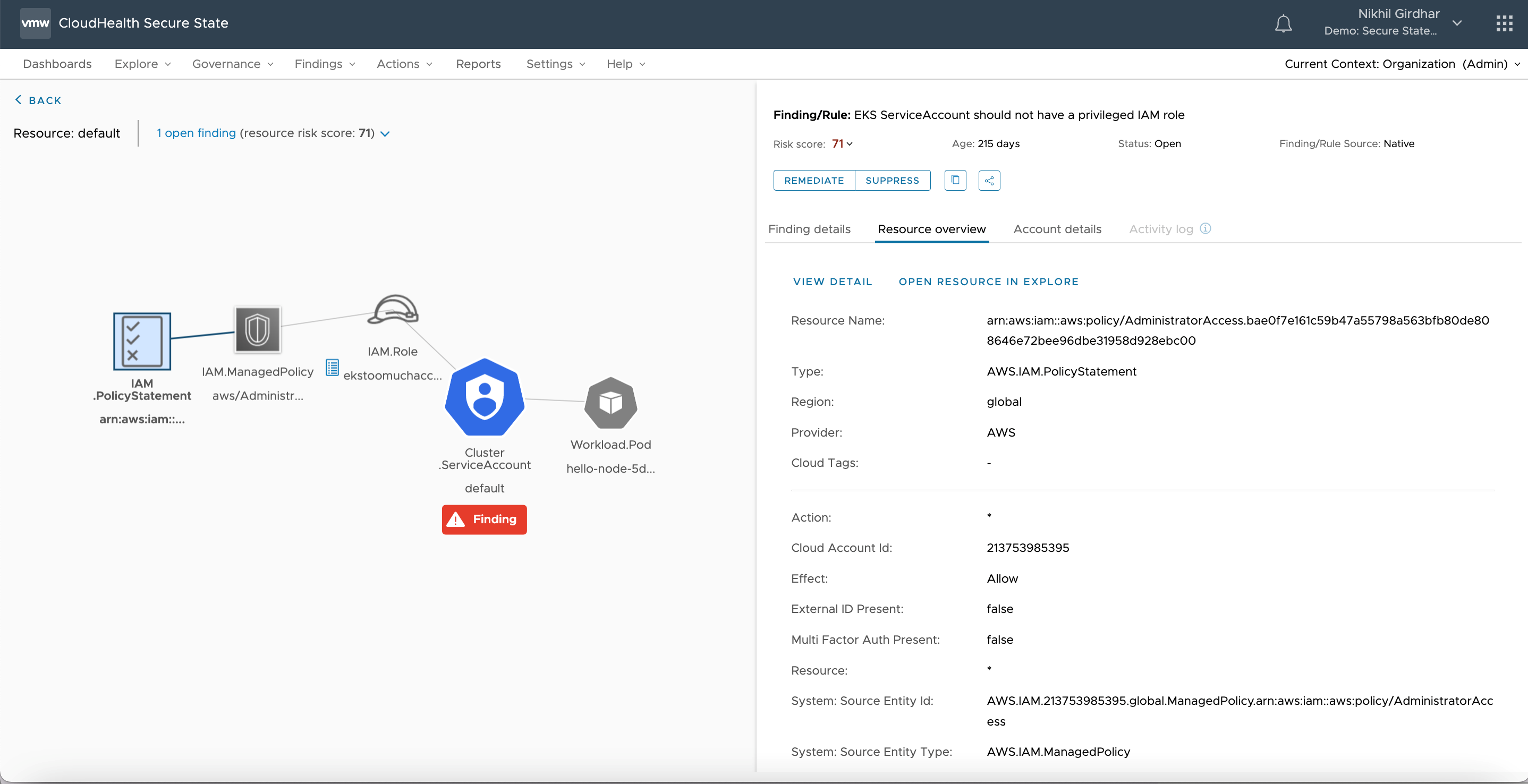 深入洞察安全风险:用户现在可以利用多云搜索来检查Kubernetes资源配置并将与集群内部或外部其他资源的关系可视化。由于支持1000个安全最佳实践和20个合规框架,用户可以主动识别高级风险以防范云劫持,例如Kubernetes ServiceAccount角色与云账户管理员IAM角色之间的连接(图-2)。凭借对Amazon EKS的支持,Azure Kubernetes Service、Google Kubernetes Engine、Tanzu Kubernetes Grid、Red Hat OpenShift、Rancher和其他Kubernetes开发者团队可以改善基础架构的安全性与合规性,为他们在公有云或数据中心的现代应用提供支持。