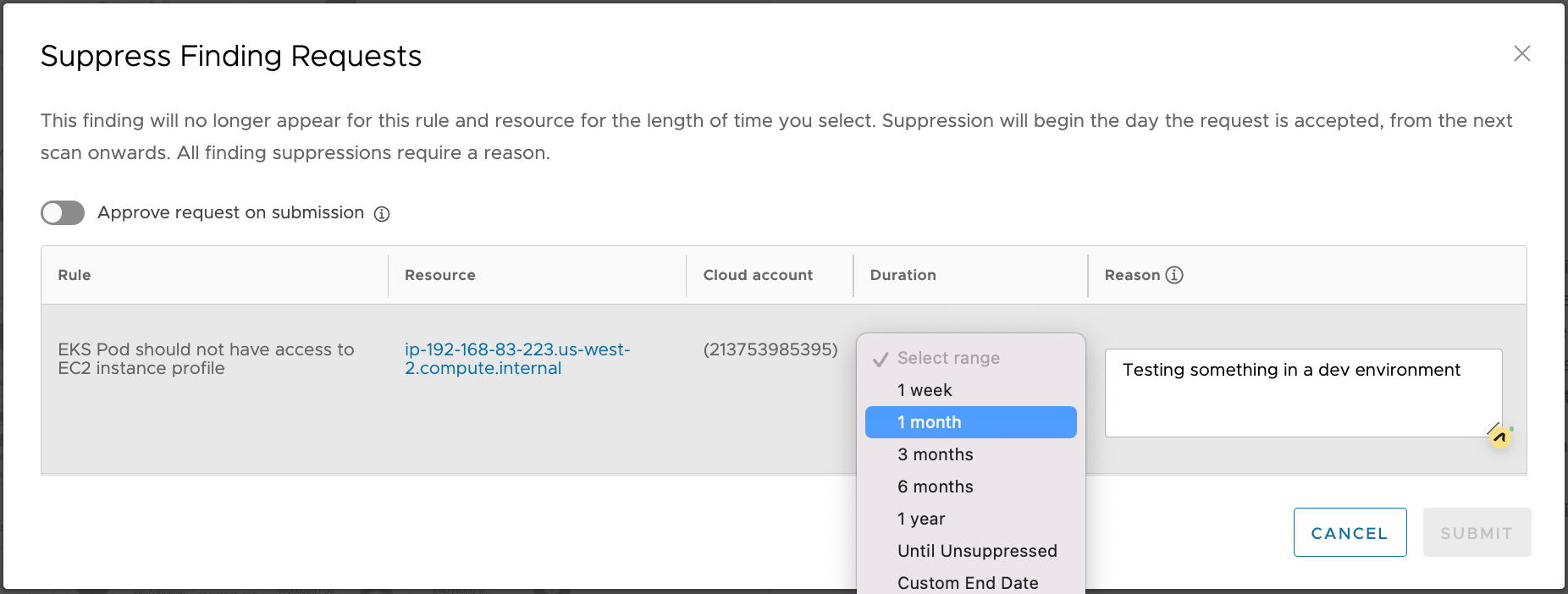 更容易实施安全措施:在一个大型企业中,实现云安全的关键在于将警报高效传递至分布在各地的团队并减少误报。CloudHealth Secure State提供一个先进的警报框架,使管理员能够自定义警报信息,提供公司安全政策和补救步骤方面的指导。通过自动化,开发者可以根据预先定义的标准(如安全政策、风险或资源标签)请求安全政策例外,以便减少警报数量。管理员则可以拒绝无效的请求或批量批准特定期限的安全例外(图-3)。交互式工作流程确保安全管理员和开发者的合作效率,最大程度地减少风险。