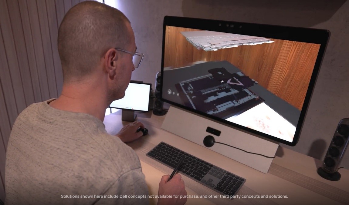 我们的实验室充满精心策划的沉浸演示和概念,帮助我们测试和探索戴尔如何在未来帮助人们在各种空间和任务之间直观地移动。从完全沉浸式的虚拟现实(VR)构建到以显示器和其他工具为特色的混合现实(XR)体验,消除了对头戴VR设备的需求,这些环境帮助我们发展了像Concept Nyx Companion的概念。作为一个可以在VR和XR环境中查看和访问的轻量级平板电脑式设备,该概念可以成为贯穿所有这些空间的一致工具,并可以确保在空间和任务之间移动时用户内容在同一个地方。不再需要给白板拍照或复制笔记上传到不同的空间——用户可以直接给他们的项目空间截图和/或轻松地复制内容,以便在不同屏幕上共享。