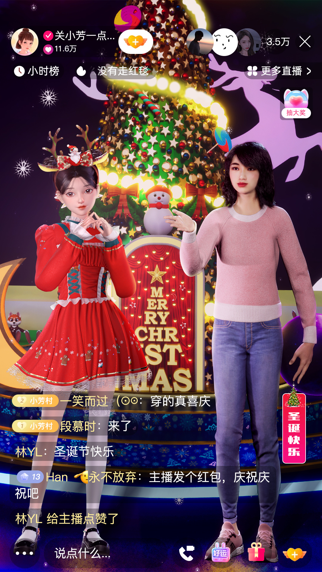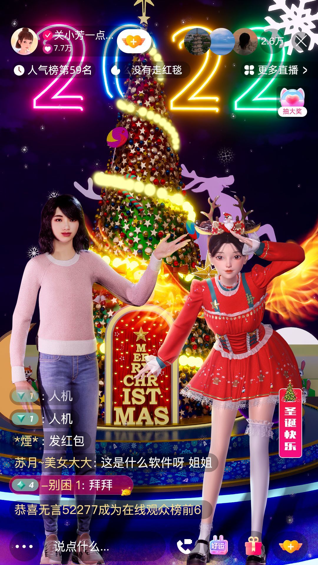 比如,在本次直播中看到的圣诞树点亮、放烟花等一系列的直播间特效,是得益于 NVIDIA 的 AI 加速计算和低时延渲染加以实现。以虚拟形象和虚拟空间为载体,基于实时的数据,对虚拟物体进行实时的渲染,这种互动玩法的设计,背后都有它的触发机制,比如圣诞树点亮,就是当点赞数增加到一定程度就能触发点亮这个动作。保证了观众都能看到并且参与到这个变化的过程,感受沉浸式互动的乐趣。