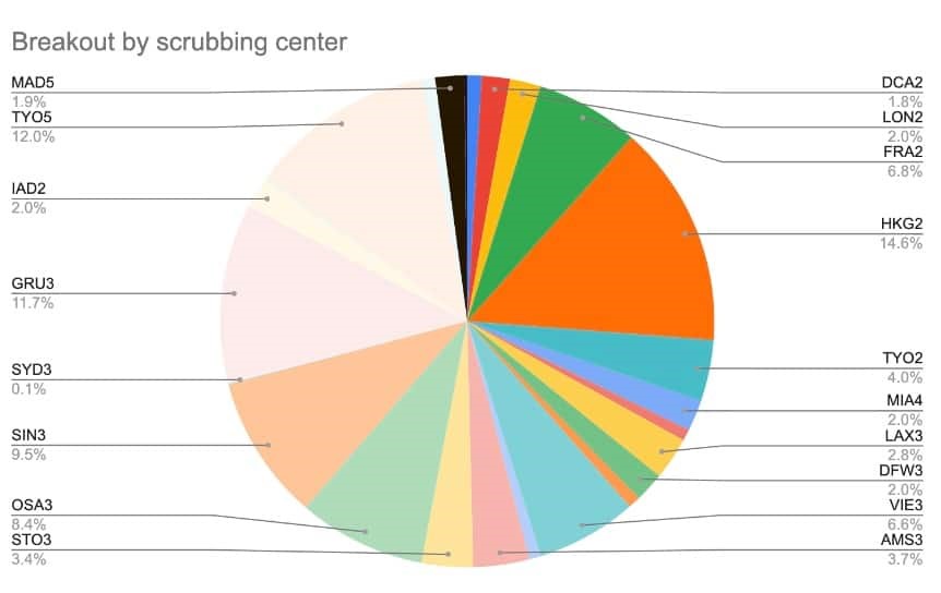 图 2:攻击分布在我们的清洗网络中,但主要来自亚太地区