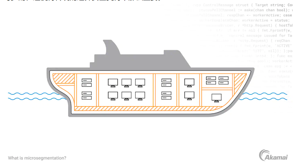 然而,在云计算时代,微分段技术作为一种新兴的安全最佳实践却具有重要意义。微分段是一种基于软件的网络安全方法,与更成熟的网络分段和应用程序分段等方法相比,具有许多优势。它将网络划分为多个小区域,每个区域只允许授权用户和设备访问,从而使得基础设施更安全。微分段中基于软件的分段元素将安全控制与底层基础设施分开,使得组织可以提升企业的扩展防御能力和监测能力灵活度。我们可以将微分段看作是一个船体,隔离了不同区域的网络流量,并控制可能的威胁,就像造船厂一直以来都使用分段来隔离船体裂口并控制洪水一样。