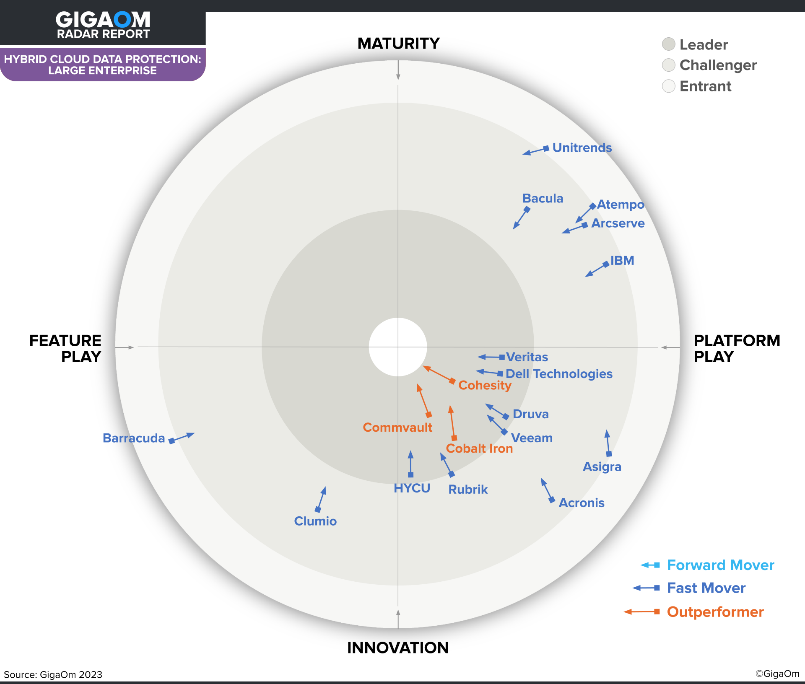 Commvault在《GigaOm大型企业混合云数据保护雷达报告》中被评为“领导者”和“表现优异者”
