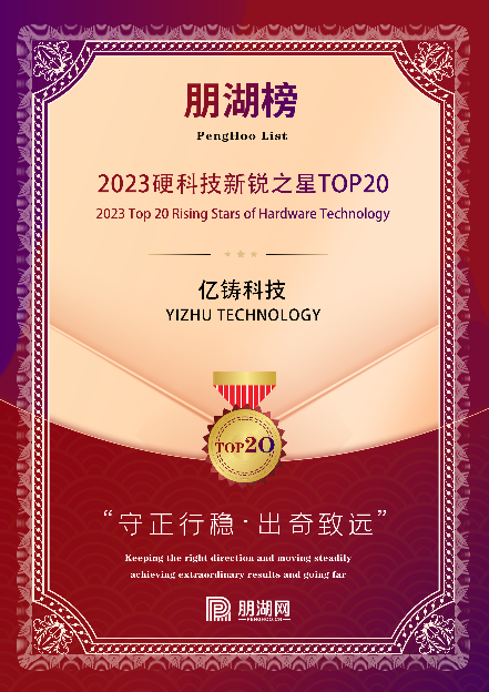 2023年12月25日 – 12月22日,中国新经济科技产业媒体朋湖网发布了“2023年度科技产业系列榜单”,亿铸科技登榜2023硬科技新锐之星TOP20。