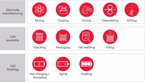 美洲和欧洲追随中国和韩国的步伐,在更靠近终端市场的地方制造电动汽车电池。这些国家投入数十亿美元用于扩大超级工厂的产能,图 6 展示的就是这个复杂的制造工艺。
