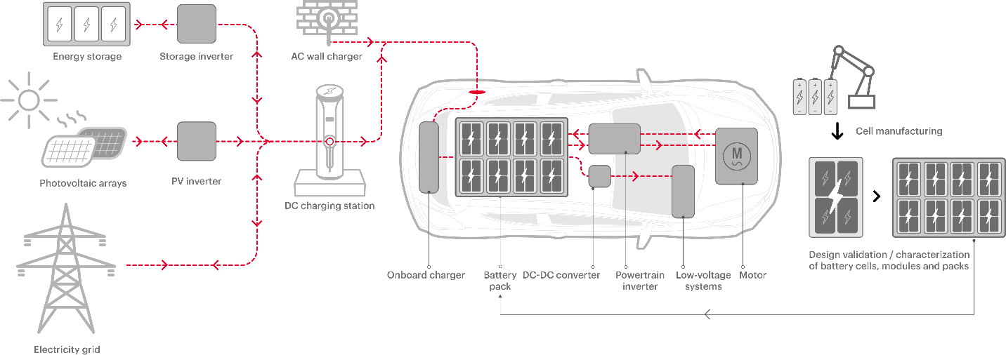 随着汽车电动化持续发展,电池开发商和制造商必须在电池测试能力方面先发制人。他们需要在设备方面做好规划,以便处理更大的电芯容量、更高的供应/消耗电流,并且能利用再生电力来降低运营成本。