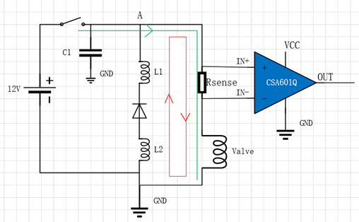 在电磁阀的电流检测中,存在两种典型的电路配置,其中一种如图一所示。