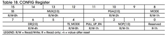 考虑到本方案涉及两路K型热电偶输入及内部温度测量的需求,配置寄存器的MODE位(bit8)应设置为“Power-down and single-shot mode”。此模式在单次转换后自动进入低功耗状态,适合对功耗有严格要求的应用场景。