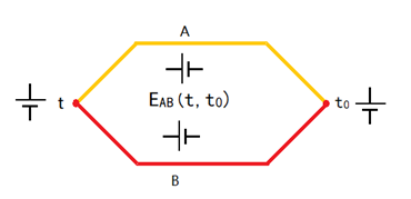 热电偶回路两接点(温度为t,t0)间的热电势,等于热电偶在温度为t、tn时的热电势与在温度为tn、t0时的热电势的代数和。tn即中间温度。