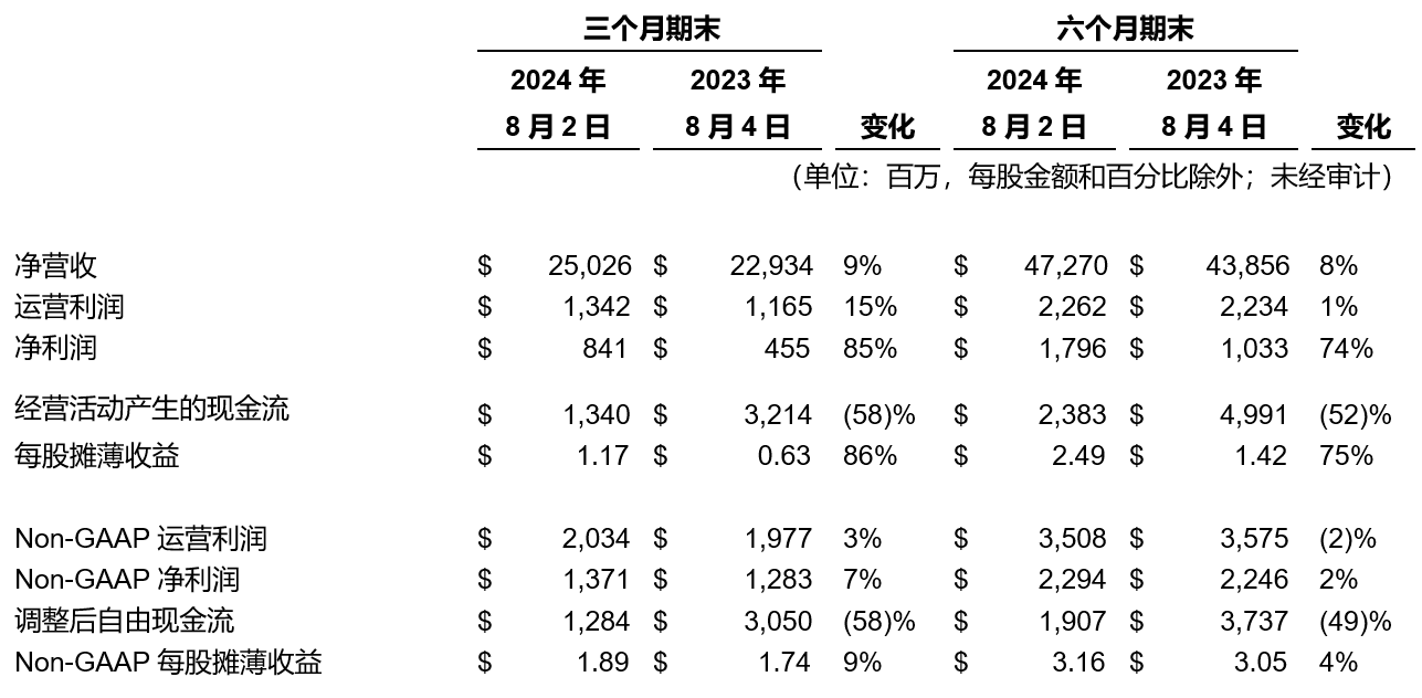 - 第二财季营收为 250 亿美元,同比增长 9%