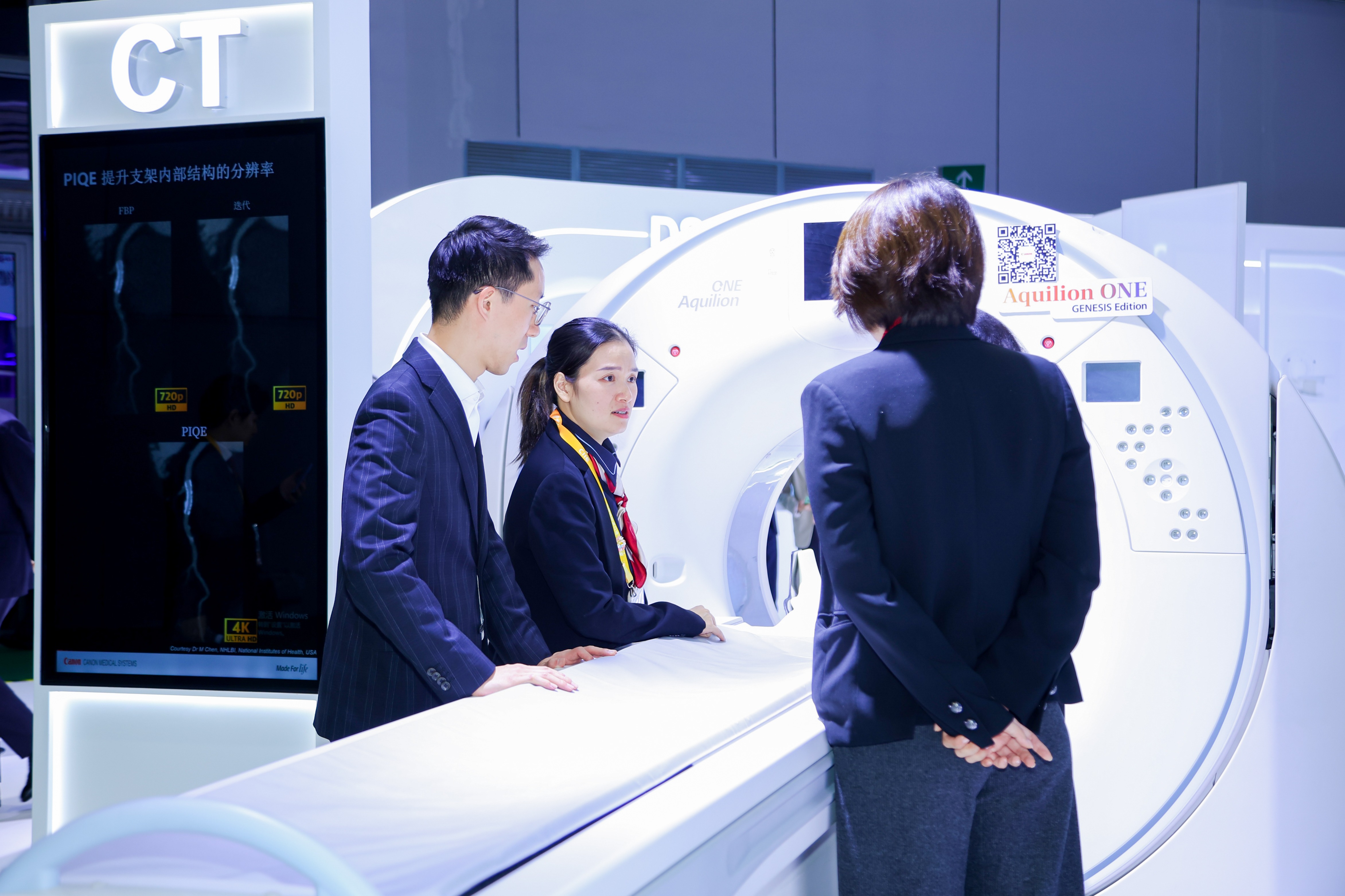 如今,人工智能(AI)技术正在加速推动医疗产品的革新与发展。在佳能擅长的影像技术方面,AI同样实现了加速赋能。搭载新研发的高清AI图像引擎PIQE的新一代高清CT作为中国首展产品,打破了传统CT成像的瓶颈,将心脏成像带入了“4K”时代,为心脑血管疾病的精准诊断带来了重大进展。同时,高信噪AI图像引擎打破了“低辐射”和“高画质”之间的折衷关系,将传统CT胸部平扫的辐射剂量降低约95%,降至50微西弗,约等于乘坐从上海飞往纽约的航班所受到的大自然本体辐射水平,实现了CT超低剂量成像的一次重大飞跃。