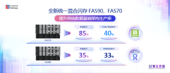 全新统一混合闪存FAS90与FAS70拓展了联想凌拓混合闪存存储阵列产品线,新产品基于NetApp最新硬件平台与ONTAP 9.15.1系统打造,兼具经济性、简易性和安全性。