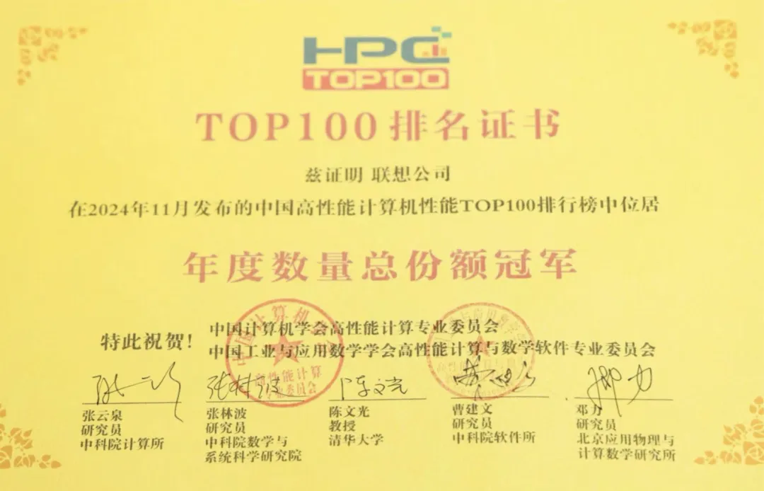 荣获2024年HPC TOP100年度数量总份额冠军