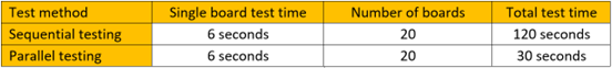 表 2:顺序测试与并行测试 PCBA 的测试时间